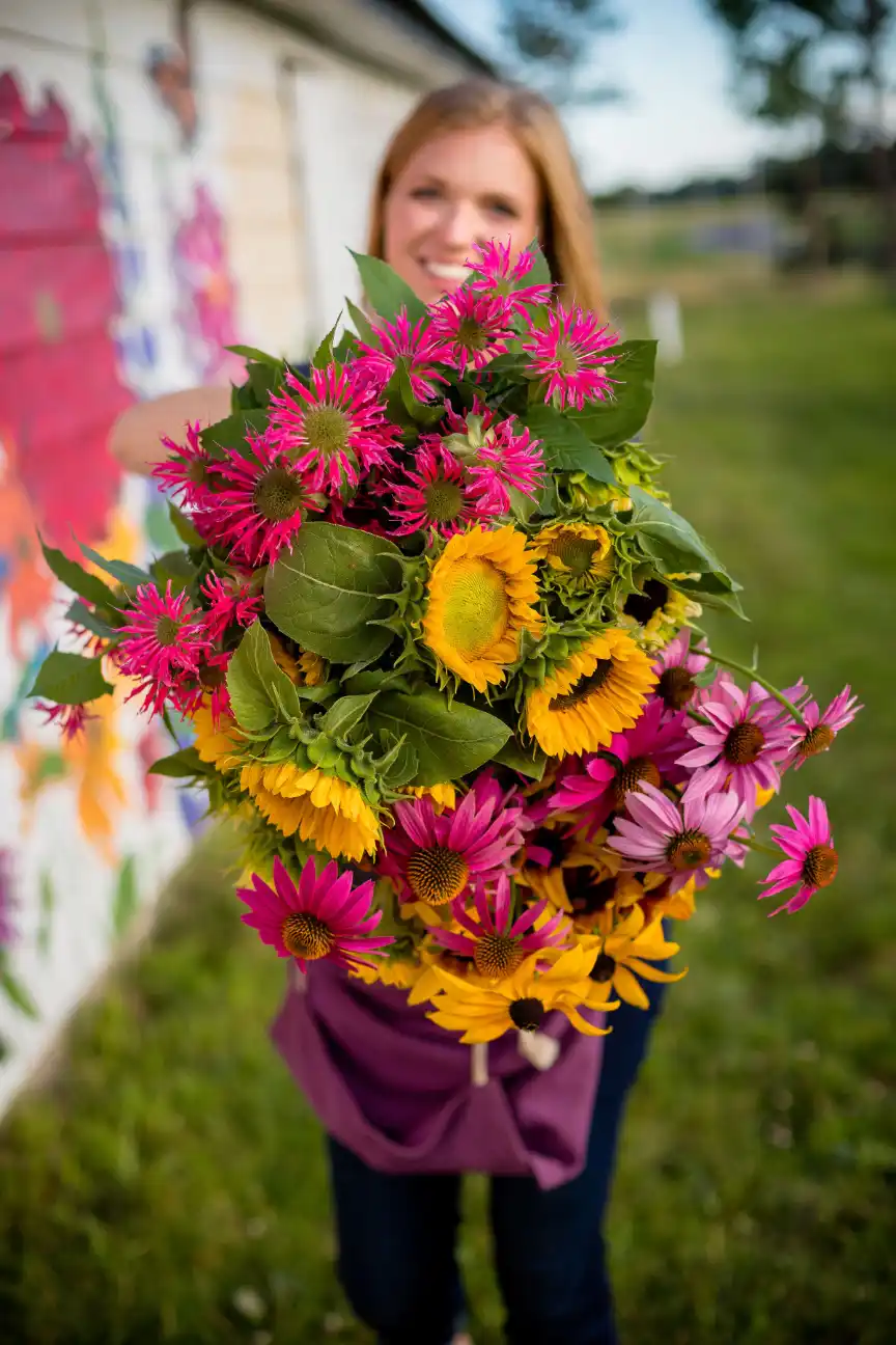 Sunny Mary Meadow is a cut flower farm located on a 6th generation farm in Stearns County, MN. We offer flower subscriptions, public and private classes, YouPick events, select self-serve farm stand hours, and serve as a stunning back drop as a photography venue.