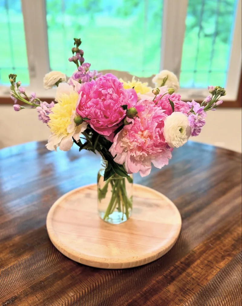 All arrangements are designer’s choice using the very best of what we have in bloom. Flowers will vary based on the season and availability. You choose the color pallette and we use the best blooms we have blooming.
