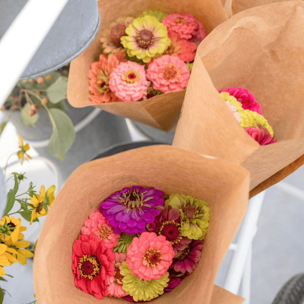 Grab a May Day bouquet and a Tulip Tea. We have 2 sizes of bouquets to choose from. Standard (like our usual mason jar) and large! They’re in these adorable sleeves (and a cup for transport) to make the perfect May Day gift. Hang them on your neighbor’s front door and surprise them! We’ve got plastic water bags to put around the stems so they are find out of a vase.