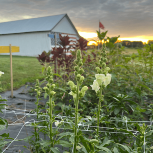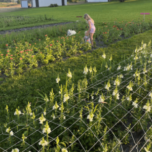 Welcome back to another Sunny Mary Meadow podcast/blog post. I am your host Liz Fiedler, and today I’m going to talk about “flower support” – essentially keeping them from toppling over. Where I live in Central Minnesota, it’s not windy. People think it’s windy here but trust me it is not windy. I grew up in Southwest Minnesota along the Buffalo Ridge. Whenever you see the National Weather Service talking about just this tiny little strip that is the eye of the blizzard all of the time, that’s where I grew up. It’s always SO windy. I don’t really know why … I heard one time that it’s like the center of the mountain ranges and the hills or something. I don’t really know, but there’s a reason they put all of the wind turbines down there in Southwest Minnesota – it’s because of how windy it is. In fact, when they get two inches of snow, there are ground blizzards where you cannot see … it’s white-out conditions. When I first moved up here to Central Minnesota, and school was canceled, I was like, “What do you mean, school is canceled? You can see for like three miles straight.” In Southwest Minnesota, visibility would literally be like three feet in front of us (or not even that far).