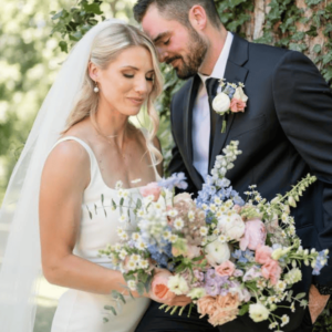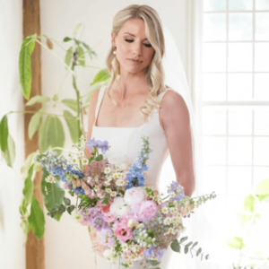 First, I’m going to give a little bit of background on something that Michelle and I share as part of our stories – how we are intertwined. So, Michelle and I are each flower farmers. She got married last June, and I will be getting married in October … both of our weddings were/are after being widowed at really young ages, which is not something that you come across very often. She and I immediately connected just over DMs. I think I sent her something, and then she sent one back, and I’ll never forget the very first message she sent was, “What was your husband’s name?” I’ve talked about this in some of my Bloom and Grow episodes, but that just comes from a place of knowing and understanding that it’s so important for someone to ask or say that. It’s like, “Wow, okay, she knows. She gets it.” I was just immediately drawn to her Instagram page over that. So, we’re just gonna talk about this briefly, and then we’ll get into the flowers. Michelle and I had a phone call this afternoon on the phone just to kind of prep for this episode/post a little bit, and we talked about how this time around, it’s just different … that second wedding. You get to kind of pick a little bit more what’s important to you, you don’t have to go through all the hoops like you would for a first wedding. So, Michelle, let’s talk about the role that flowers played in your wedding.