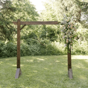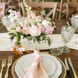 So, I worked with Joelle from Red Barn Florals. She just lives a couple of roads over from me, and we just click. We love the same things and the same style. I knew I couldn’t do everything by myself, but I had a vision that I wanted. I wanted the whimsical, cottage-y florals, and Joelle loves the same stuff I do. So, she helped me with my arbor installation, as well as my bridal bouquet, because I knew I wanted it to be perfect, and I knew I’d let the nerves kind of get to me. And I didn’t want to be just stuck doing all the flowers the day before my wedding. I made my own centerpieces and my own other little arrangements, and she did like the big feature things because I knew I could trust her to do it.