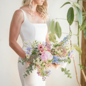 Liz: Yeah. And as we talked about, I think the whole point of this huge local flower movement is to use flowers when they’re naturally blooming. Yes, you can usually get tulips year-round but it saves money to buy in-season. You just kind of adjust your expectations. Trying to get certain flowers in the dead of winter is expensive. I mean, if you’re a December bride and you’re like, I really want peonies, it’s like, “Okay. I don’t know what to tell you. It’s gonna be ridiculously expensive. They’ll need to be shipped in.”