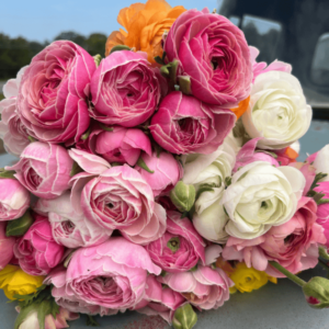 Liz: If I had room, and if I was more organized, I would be curious to try doing ranunculus in the fall. I’ve seen a lot of blog posts lately about doing ranunculus in the fall in Minnesota, they say it’s perfect. You pre-sprout them in August and then plant them in your high tunnel, and then like in October/November, you have ranunculus. But for me, that would mean pre-sprouting them at the end of June (90 days before transplanting). And that is at the height of my busy season, and then to get those transplanted and then to waste the premium high tunnel space, I don’t know if it’s worth it. They’d have to go in a high tunnel. I could not put them in a low tunnel and hope for the best. I don’t know, maybe, but our Septembers are still pretty hot, and there’d have to be a lot of shade cloth. I don’t know, it’d be risky.