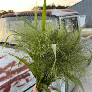 The “air” components are like ornamental grasses, scabiosa, cress, waxflower, or statice. They don’t really take up volume, and just adding one or two can go a long way. I try to keep them among the longest in the bouquets. It’s just something that kind of adds a little touch to the end. They don’t really take up space. It’s like adding dogwoods in a Christmas porch pot, where it’s just kind of sticking out like a little accent.