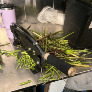 As I talked about in a recent post, this year, I bought a stem cutter and will likely be a second one. It’s kind of like a massive paper cutter. And it allows me to cut the stems for my 50 subscriptions a bouquet at a time, rather than cutting each individual stem with scissors. It really saves a lot of time.